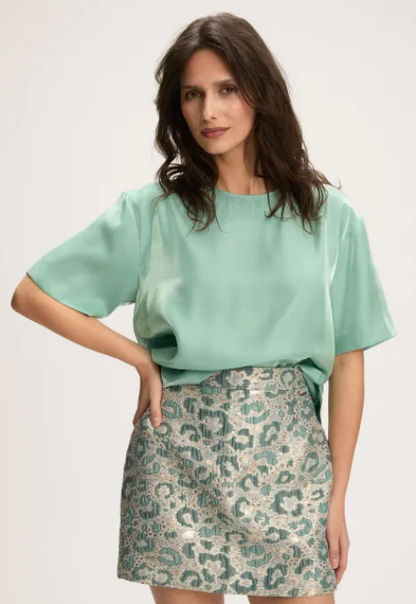 Dit is de Kahliya Blouse van het merk Silvercreek. De blouse heeft korte mouwen.