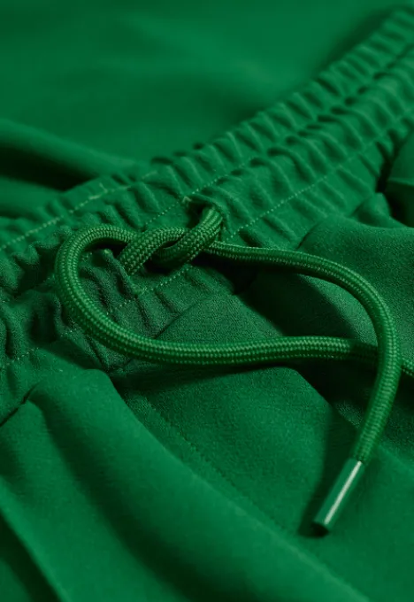 Dit is de Mehera Broek van het merk Madness. De broek heeft een elastische heupboord, twee zakken in de zijnaad en een trekkoord in de heupband.