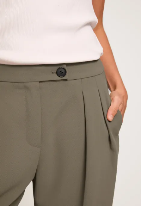 Dit is de Mosaic Broek van het merk Madness. Deze broek heeft een lichte ribstructuur twee steekzakken, een ritssluiting met knoop, plooien aan de bovenzijde van het item en de broekspijpen hebben een vouwlijn.