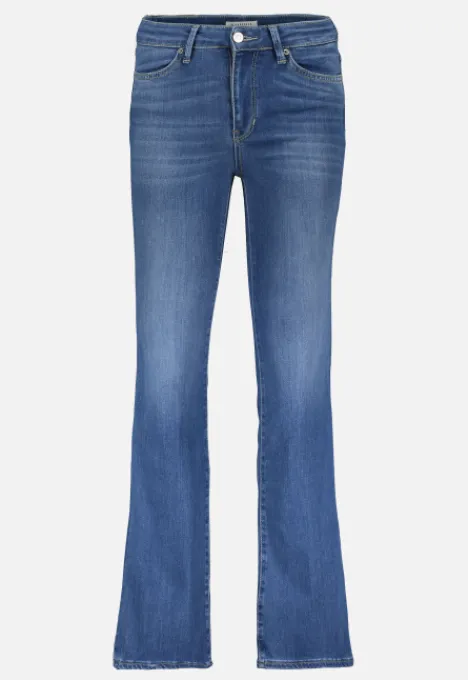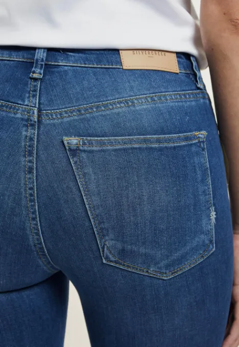 De Celsi Flare Jeans is van het merk Silvercreek. Deze jeans is aansluitend vanaf de taille tot aan de knie. Vanaf de knie loopt de pijp uit in een mooie elegante flare-leg. Deze mid toon indigo jeans is afgewerkt met een zachte vervagingen die er voor zorgt dat deze jeans het hele jaar door gedragen kan worden.