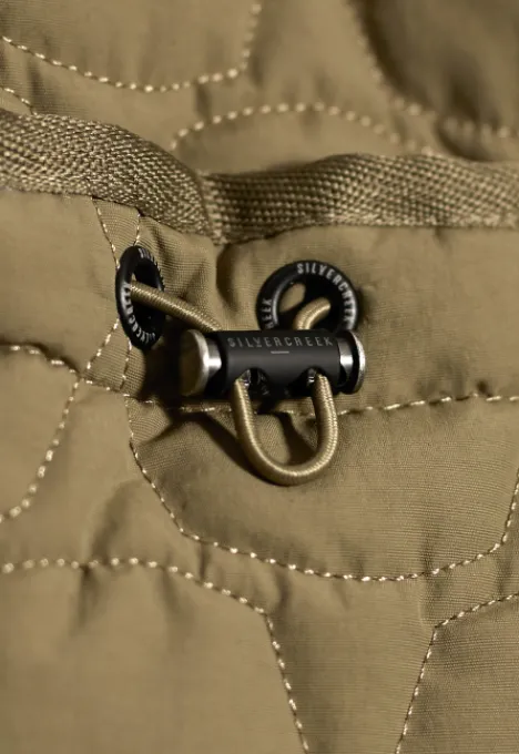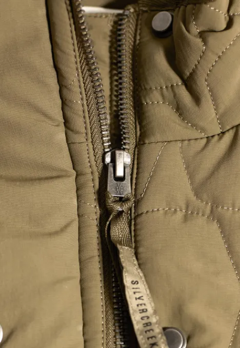 Dit is de B2060101034 Brooke Jas van het merk Silvercreek. De jas heeft een normale kraag, ritssluiting, twee steekzakken en een all-over patroon.