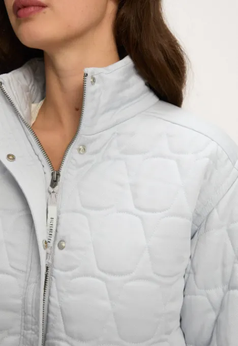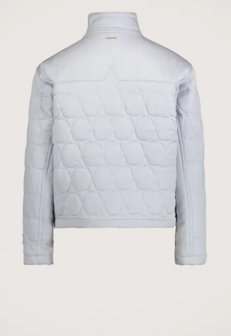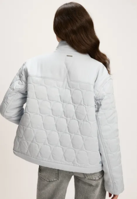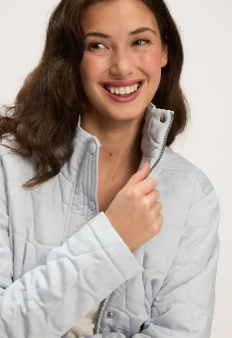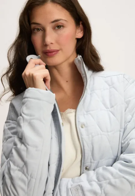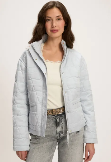 Dit is de Hazel Jas van het merk Silvercreek. De jas heeft een opstaande kraag, ritsluiting, twee steekzakken met knoopsluiting, een all-over patroon en een elastiek in de zoom.