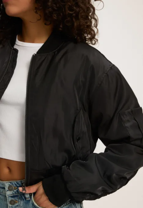 Dit is de Meggy Jas van het merk Madness. De jas is gemaakt van 100% polyester en heeft een cropped model. Het item heeft een ritssluiting, twee zakken met drukknoopsluiting en de boorden zijn geribd.
