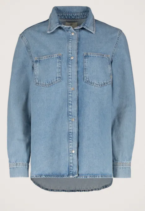 Dit is het Touria Denimjack van het merk Silvercreek. Dit deminjack is gemaakt van 100% katoen, heeft lange mouwen, een drukknoopsluiting, twee borstzakken, manchetten met drukknopen en het logo van Silvercreek staat op de drukknopen.