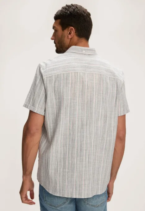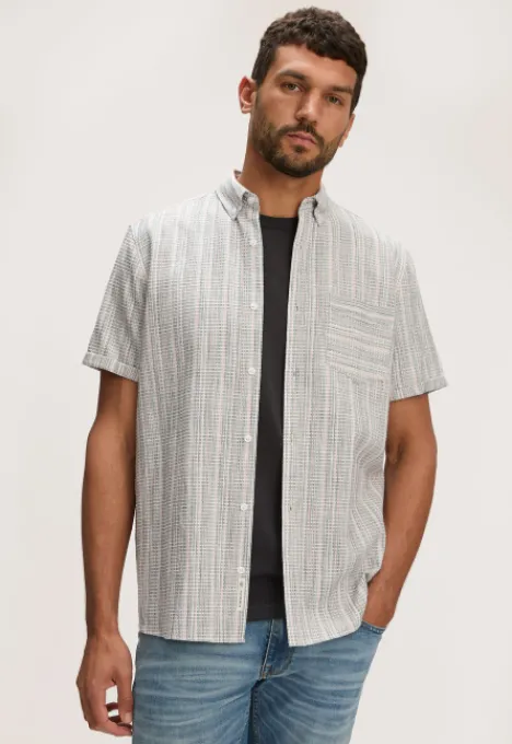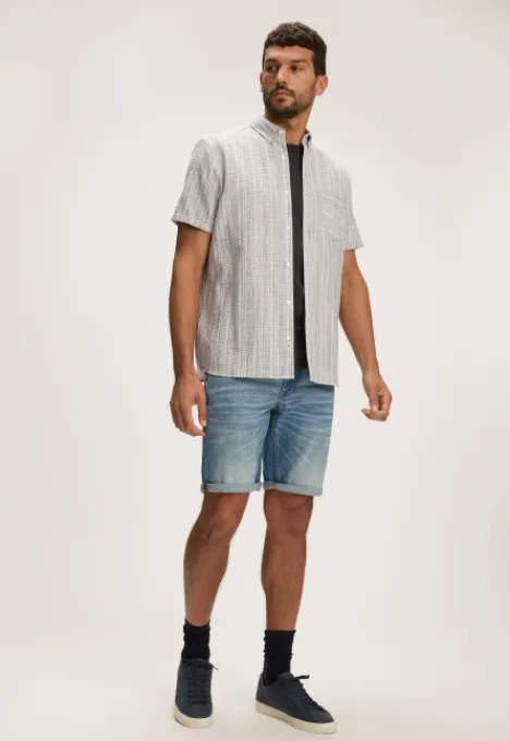 Dit is het Seoul Overhemd van het merk Silvercreek. Het overhemd heeft een regular pasvorm, een polokraag en heeft korte mouwen met een omslag. Het overhemd heeft een gestructureerd patroon. Verder heeft het item een knoopsluiting en een borstzak.