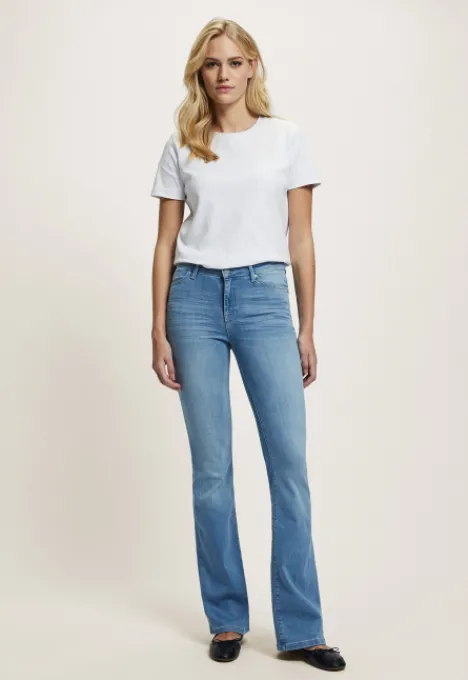 De Celsi Flare is van het merk Silvercreek. De Celsi Flare zit hoog op de heupen, De jeans is vanaf de waistband tot aan de knie aangesloten en vanaf de knie loopt de jeans uit tot een elegante flare-pijp. Door de perfecte shape en positie van de achterzakken geeft het de jeans de ‘less is more’ look and feel.