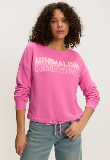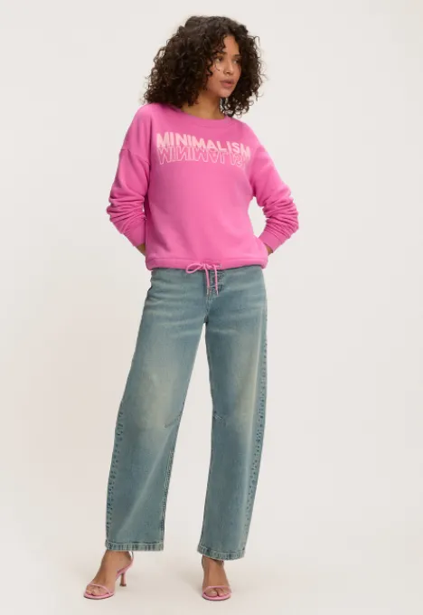 Dit is de Marella Sweater van het merk Madness. De sweater heeft een ronde hals, een opdruk aan de voorkant en een trekkoord aan de onderkant.