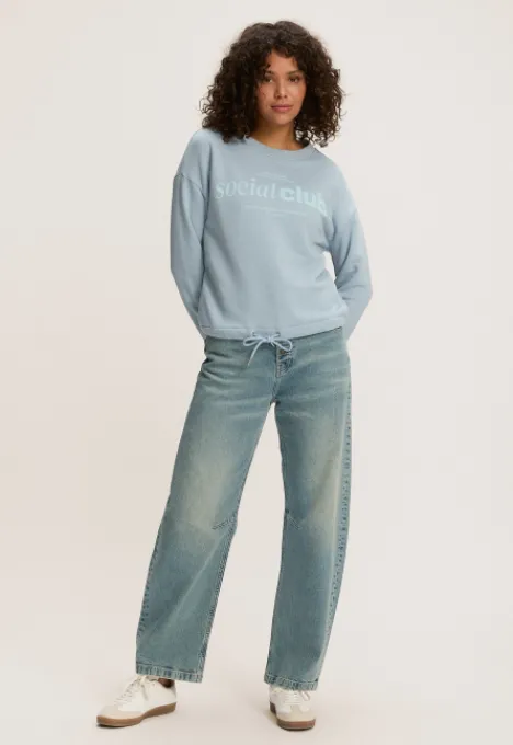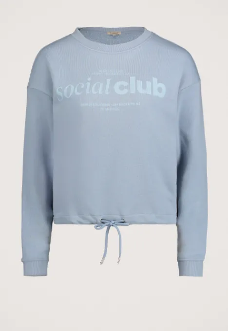 Dit is de Marella Sweater van het merk Madness. De sweater heeft een ronde hals, een opdruk aan de voorkant en een trekkoord aan de onderkant.