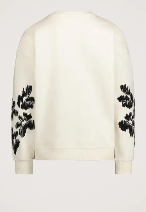 Dit is de Suki Sweater van het merk Silvercreek. Deze sweater heeft een ronde hals, geribde boorden, een zachte binnenkant, geborduurde figuren op de mouwen en een schoudernaad die over de schouder heen valt. Linksonder is de sweater voorzien van een Silvercreek element.