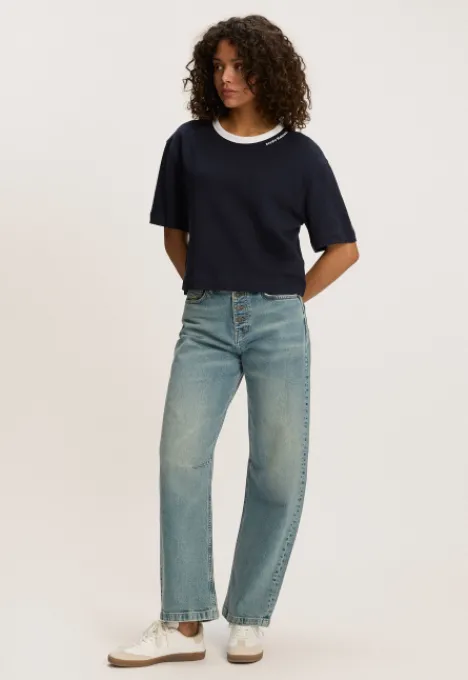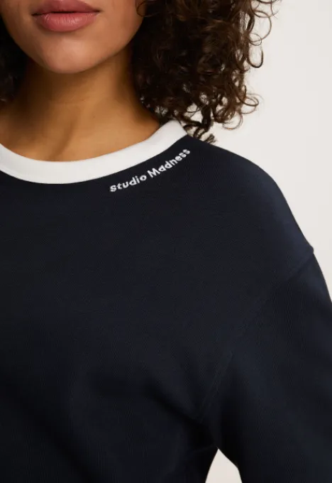 Dit is het Moon T-shirt van het merk Madness. Dit T-shirt heeft een loose cropped fit en een ronde hals. Het katoenen T-shirt heeft een logo detail op de borst.
