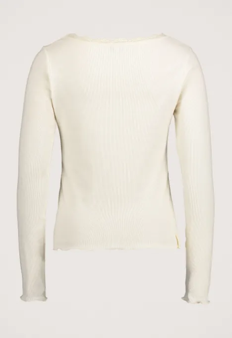 Dit is de Sade Longsleeve uit de MOVE collectie van het merk Silvercreek. De longsleeve is ribgebreid, heeft een ronde hals met een kante rand en de boorden van de mouwen en zoom zijn opgekruld.