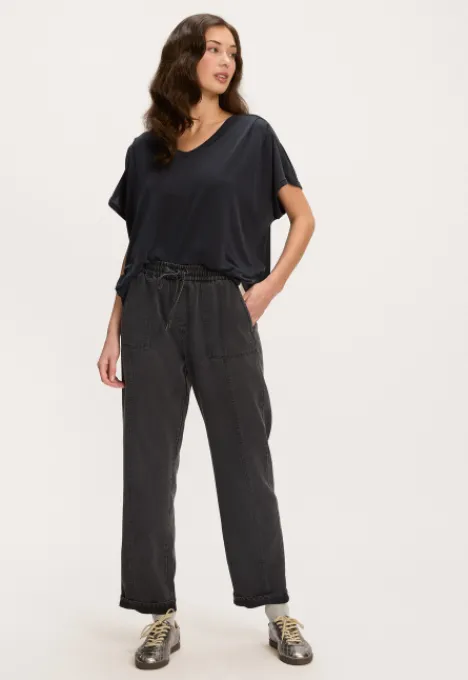 Dit is het Sanne T-shirt van het merk Silvercreek. Dit T-shirt heeft een loose pasvorm, korte mouwen en een V-hals.