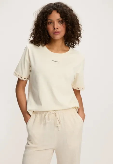 Dit is het Seva T-shirt van het merk Silvercreek. Dit T-shirt heeft een regular fit en bij de mouwopening een gehaakt tape detail.