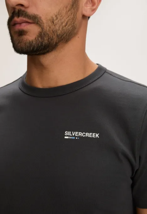 Dit is het Friso T-Shirt van het merk Silvercreek. Het T-shirt heeft een regular pasvorm, een ribboord ronde hals en korte mouwen. Op de borst zit een rubberen Silvercreek logo en op de achterkant een backprint.