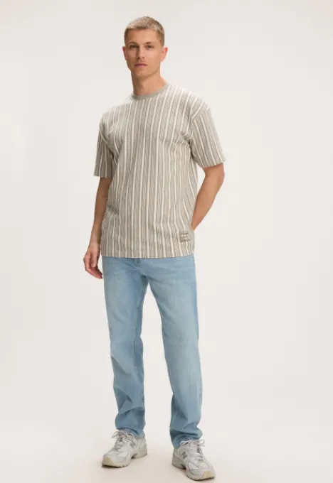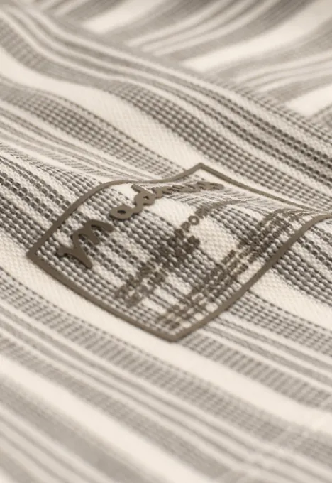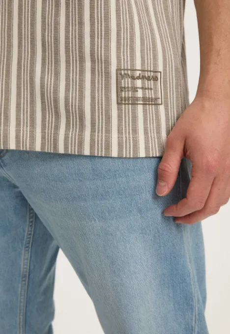 Dit is het Mazo T-shirt van het merk Madness. Een gestreept T-shirt met korte mouwen, een ronde hals en subtiel Madness logo onderaan.