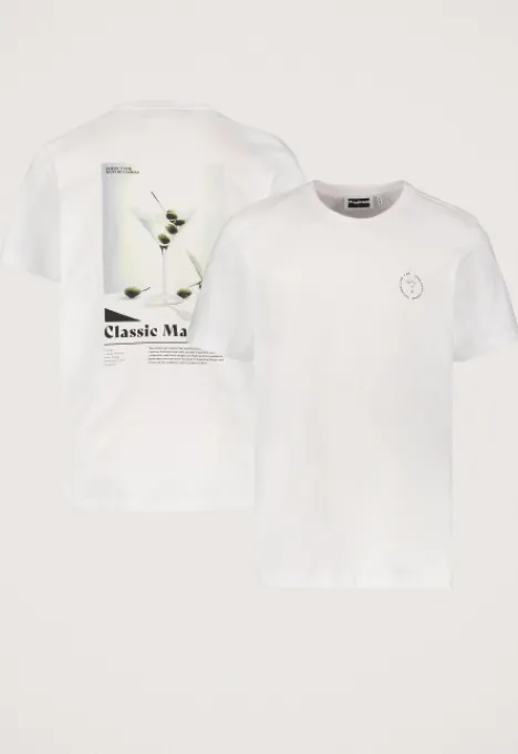 Dit is het Mino T-shirt van het merk Madness. Het T-shirt heeft een regular pasvorm, een ribboord ronde hals en korte mouwen. Op de borst staat een print met tekst en op de achterkant van het T-shirt staat een grote print.