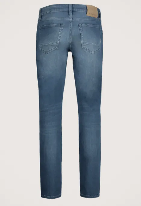 Dit is de Porter Slim Tapered Jeans van het merk Silvercreek. De PORTER Grey Blue is een slim fit met een moderne, easy-going pasvorm. De jeans zit aangesloten op het bovenbeen, maar nooit te strak, en sluit mooi aan bij de enkel. De jeans is een 5-pocket model met een ritssluiting. Een comfortabele fit die je moeiteloos stijlt – aangesloten als je ‘m op maat draagt, of wat losser met een maatje groter. Deze uitvoering is gemaakt van een jogg denim met 1% stretch, wat zorgt voor een soepele feel en veel draagcomfort. De stofkleur heet ‘Smoke Blue’: een subtiele mix van grijs en blauw op indigo basis, die de jeans zijn originele Grey Blue uitstraling geeft. Omdat de kleur zelf al sterk is, is het waspatroon bewust rustig gehouden, met slechts lichte whiskers op het top block voor wat diepte. De contraststiksels versterken de cleane look en geven de jeans nét dat beetje extra. Een verfrissende toevoeging aan je denimrotatie – iets anders dan blauw of zwart, maar net zo veelzijdig.