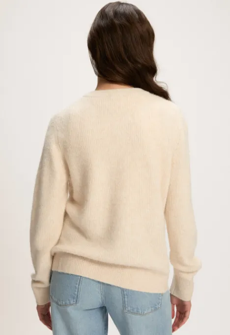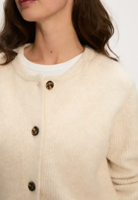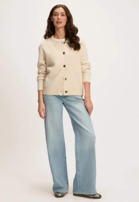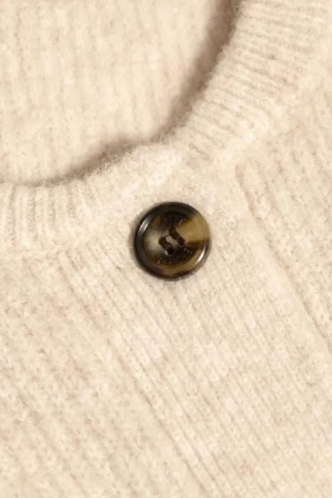 Dit is het Phine Vest van het merk Silvercreek. Het gebreide vest heeft een ronde hals, lange mouwen en een knoopsluiting.